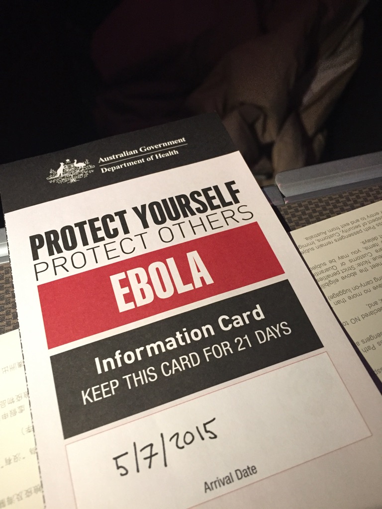 I fill out my landing card and the “Africa = Ebola” form…