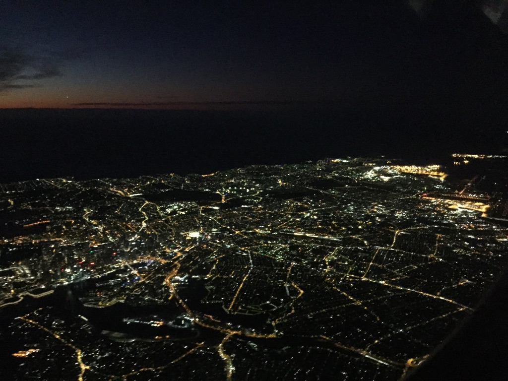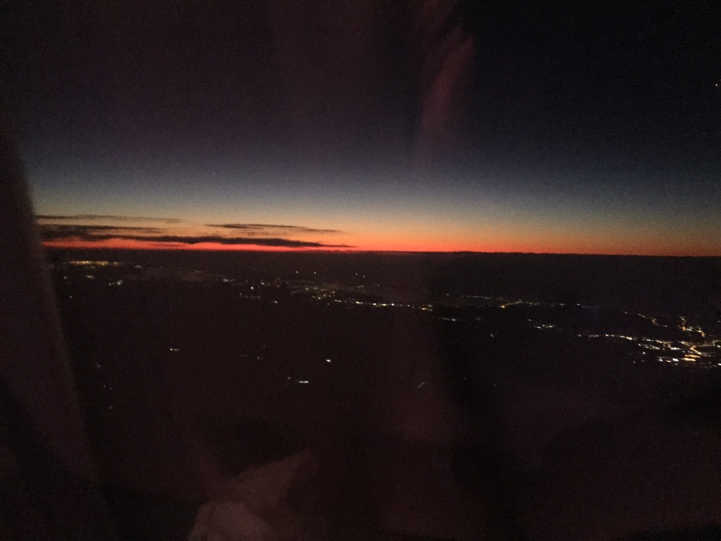 One of the numerous announcements tells us we’ll land at 0625 and the temperature is 7 celsius. YES. I have escaped heat, finally!