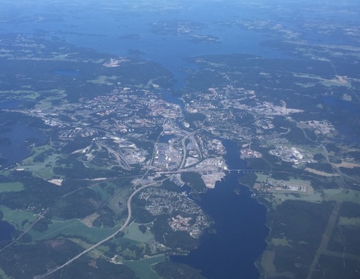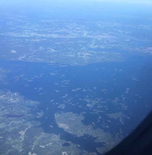 He finishes off with “you should never trust a pilot”. Fantastic. The round of applause he got was well deserved. We left late though. An hour late pushing back. I’m not totally panicky, but a bit. As it goes the BA magazines were plenty interesting and then we’re in the air, an almost entirely cloudless journey meaning I get great views of patchwork Suffolk - East Anglia looks the same shape as it does on maps and everything! - the Netherlands, Denmark, and then Sweden. I’m intrigued by straight line “roads” (i.e., not roads) carved through forests, and finish the 580th and final level of the iOS game WordBrain, which is excellent and I am sad it’s all over. Me and Helen have really enjoyed playing it together. There should be more levels..