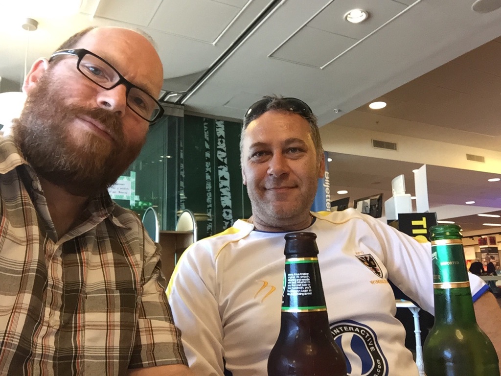 … he comes to the airport. Emergency Dons beer! Paul is an AFC Wimbledon fan I’ve known since the late 90s but hardly ever see or speak to, for mostly obvious reasons - he lives in Sweden and I’m an antisocial twat. Last time I saw him was in summer 2013 when he turned up at the main railway station with a consignment of alcohol for us on the Great Circular European Railway Challenge. This time we sit and have a couple of drinks in a bar on the arrivals level and talk football and flights and stuff for a while. He has a go at me for not having heard of Swanage until a few weeks ago.