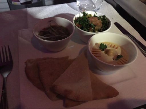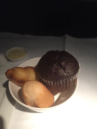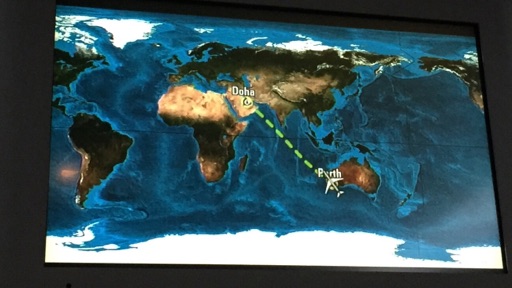 But, they’re very comfortable. No-one sits next to me during take-off, or in fact throughout the entire flight - turns out 5JK work perfectly well. The exuberantly cosmopolitan cabin crew perform what I now, after about 7 hours in total of Qatar Airways experience, realise is their typically excellent customer service. There are a lot of staff, always referring to me by name (actually, this happened on the Qantas flight too, but I find it quite rare in business class), and the food and drink comes nice and quickly. I can eat when I want and the drinks are refilled regularly.