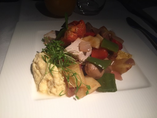 Then, a bunch of episodes of Brooklyn Nine Nine. I would’ve watched the Jinx except I finished it (without properly realising - thought there might be a coda) on the previous flight. Breakfast arrived, I’d forgotten what I’d ordered at the start of the flight. Apparently it was a lot of dry chicken with some peppers and sausage and potatoes.