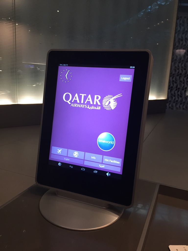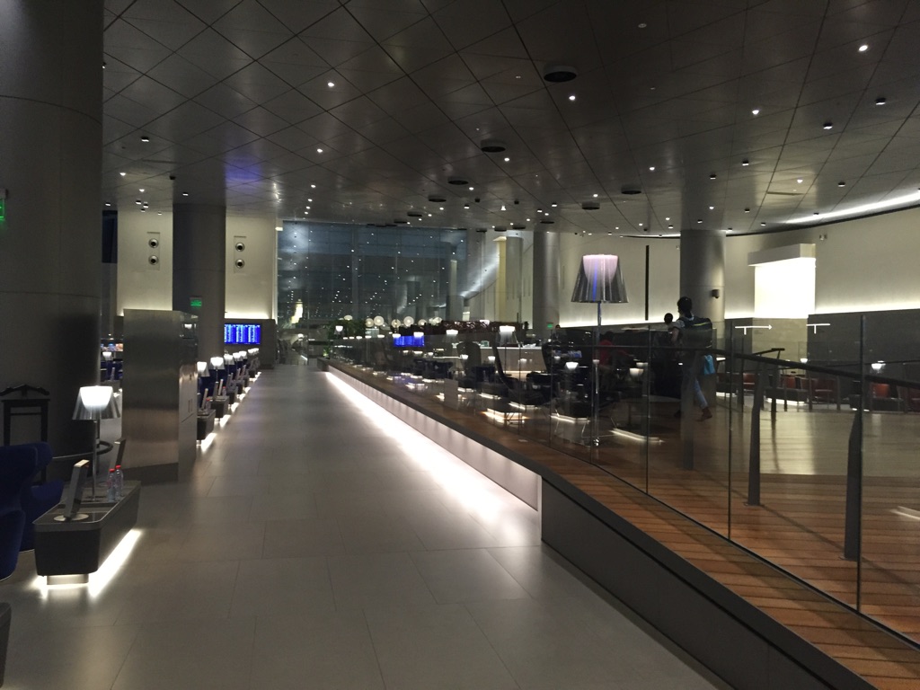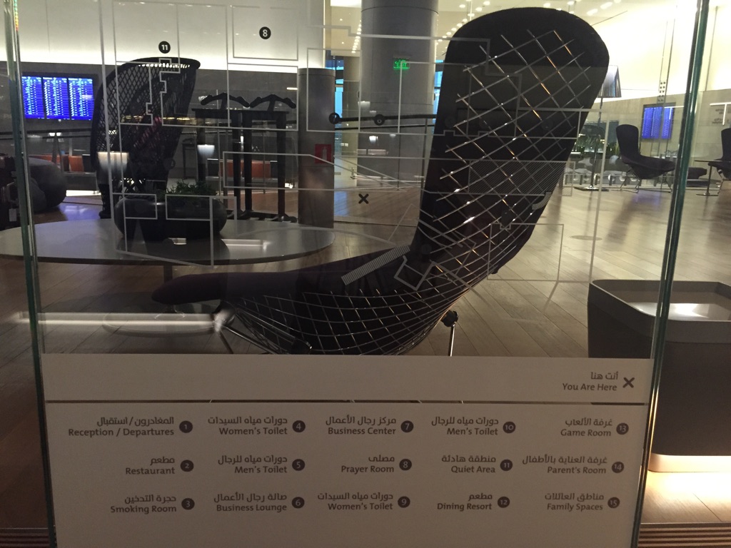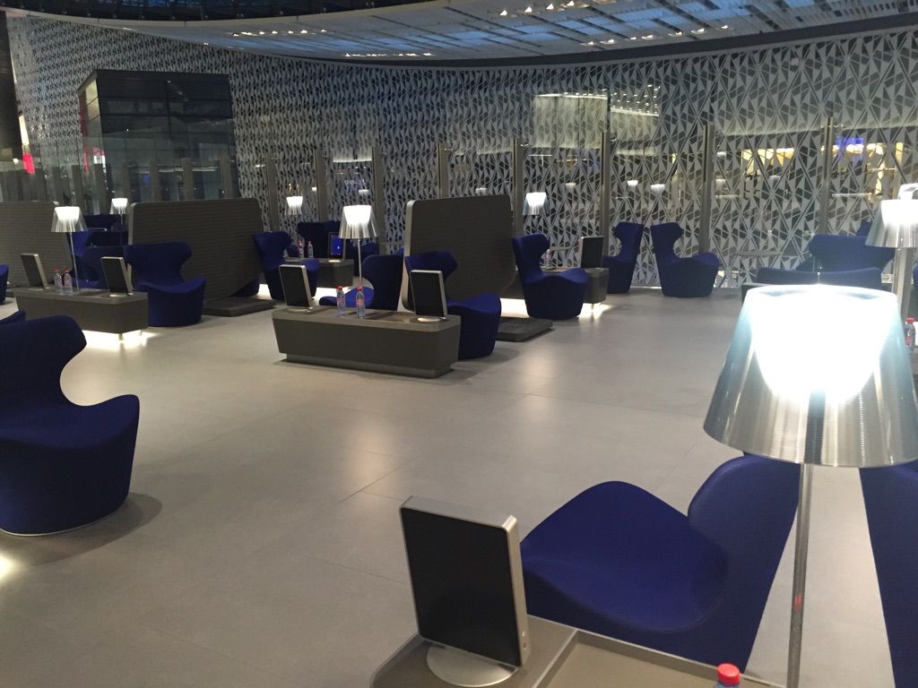 So yeah, I had a plan to fix all this. But first, I went to the al Mourjan lounge and had a wander. My god, it’s amazing. It’s huge, with two floors, and lots of different areas with different, I dunno, personalities? Decor and furniture, certanly. A proper restaurant, a “dining resort”, hundreds of seats you can happily sit at duo or solo and each of which has bottled water and an android tablet for use, plus international power sockets and USB sockets.