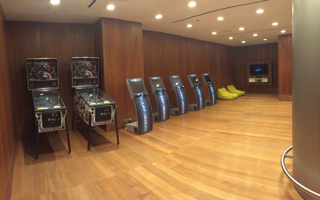 There is a fake lake with occasional small popping mini fountains, which look pretty cool in a slow motion video. Showers, posh toilets, a creche, fake trees, and holy shit a room with a bunch of playstations and a Wii U and two pinball machines and foosball tables. Sadly none of the games were on and I wasn’t in the mood to play pinball rght now. All I could think was how amazing this lounge must be for a dipso like me in non-Ramadan (the non-5am-ness isn’t too important - if I’m airside, all bets are off).