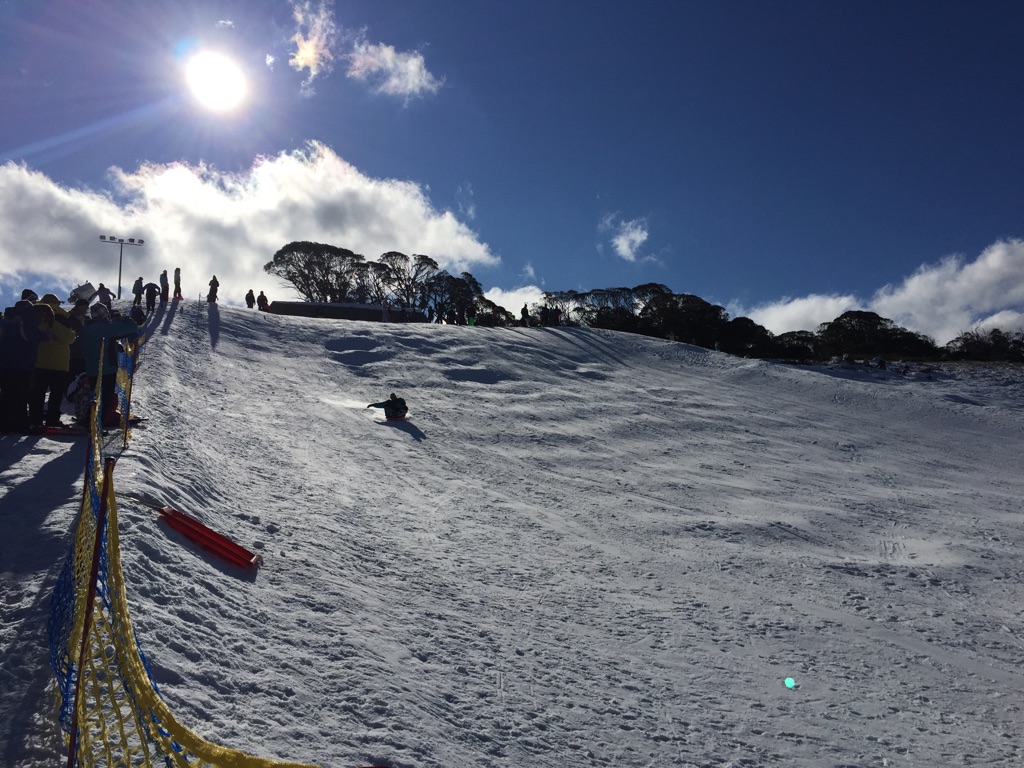 But I’m not and i don’t. One last race for the girls and then we have to leave, giving the clothes and equipment back and buying donuts at the Skitube station. The donuts arrive 15 seconds before the train, which is absolutely rammed and considerably more boring than the ride up, with anticipation giving way to impatience.