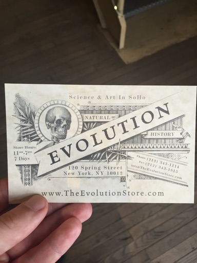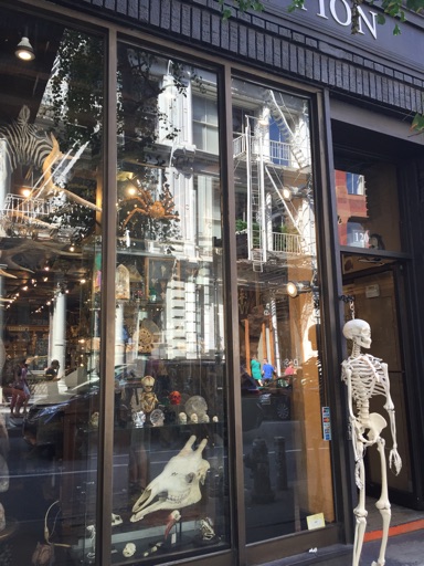 I don’t really know what’s in SoHo. Apparently it’s a nice shopping district and the cab drops us at Spring St. Wandering along there are numerous high-end boutiques and then a shop called Evolution. Part shop part museum, this place is awesome. It sells bones and stuffed animals and freeze-dried animals and meteorites and crystal skulls and etc. There are racoon penis bones, a full gorilla skeleton - yours for just $15k, America - 405lb meteorites, porcupine quills, freeze-dried mice, giant hornets in resin, bear skulls, fossils, etc. I don’t take any photos ‘cos it seems like the sort of thing that would offend or annoy them.