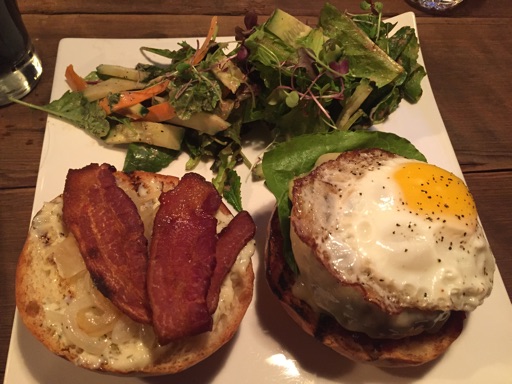 I did order food at the same time: a breakfast burger. It was painful to ask for salad instead of chips, this promise to my niece is a real pain in the arse. 2 months now. Anyway, the burger was fantastic and the stout wasn’t bad either. NFL was on all the TVs, multiple games at once all at the same volume and the bar was getting crowded and loud despite being only 1pm.