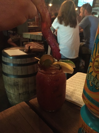 The beer kept coming though Andrew couldn’t face it, so was on the Bloody Mary. He seemed impressed and invited me to taste and holy shit, it was awesome. For a start the fucking thing had bacon in it. Bacon! And it was so chock full of horseradish sauce I was still feeling the great burning sensation on the roof of my mouth a good 90 seconds later. Why have I never known Bloody Mary could taste like this?
