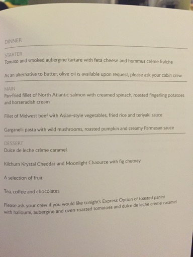 We have cards for picking what to do for breakfast: sleep, or eat. I choose eat, and pick the cooked breakfast option with a danish and a smoothie. After dinner I start writing this post and finish the only TV worth watching - the entertainment system is a crufty old version with much less choice than on the way out - and decide to kip for a bit anyway. I put an audio programme about mathematicians on and sleep for a couple of hours, off and on, interrupted by losing feeling in my hands a couple of times thanks to bad interactions with hard surfaces.