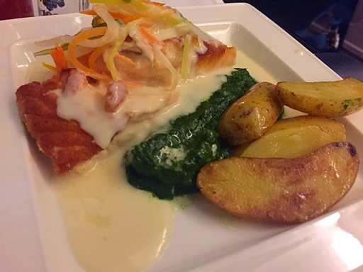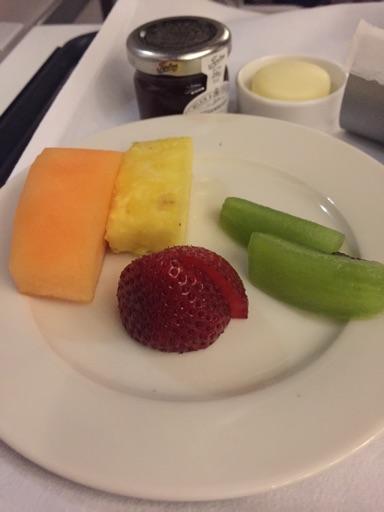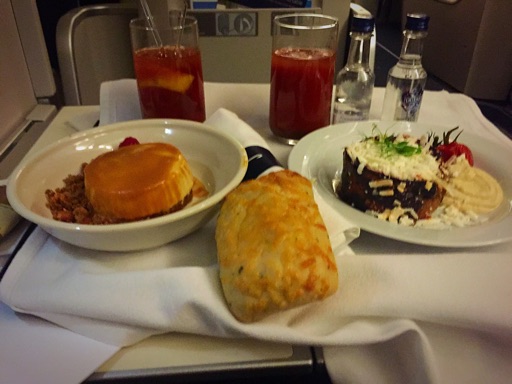 It’s not my seat, at least. Lots of people have complained and the CSD says she’s going to reboot it, and this seems to do the trick. I decide to have a bloody mary rather than champagne, and am given two. Well OK then. Food service comes very quick, with starter and dessert on the same plate. It’s pretty small and pretty nice. Despite the menu offering a choice for dessert I am not offered one and just get a cake thing, which is OK but I really wanted the cheese.
