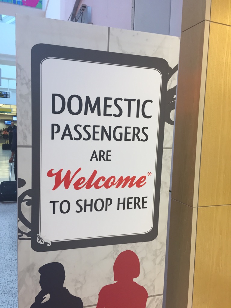 A very very panicked man runs to the first class desks and seems to be very luckily allowed to check all his bulky luggage with about 15 seconds to go before his flight closes for check-in. The woman checking passports and boarding passes is one of the slowest moving, acting and speaking people I’ve ever seen and just as she’s about to check mine, I am forced back by someone shining their staff ID badge at me forcefully while they silently escort some other guy through. Whatever.