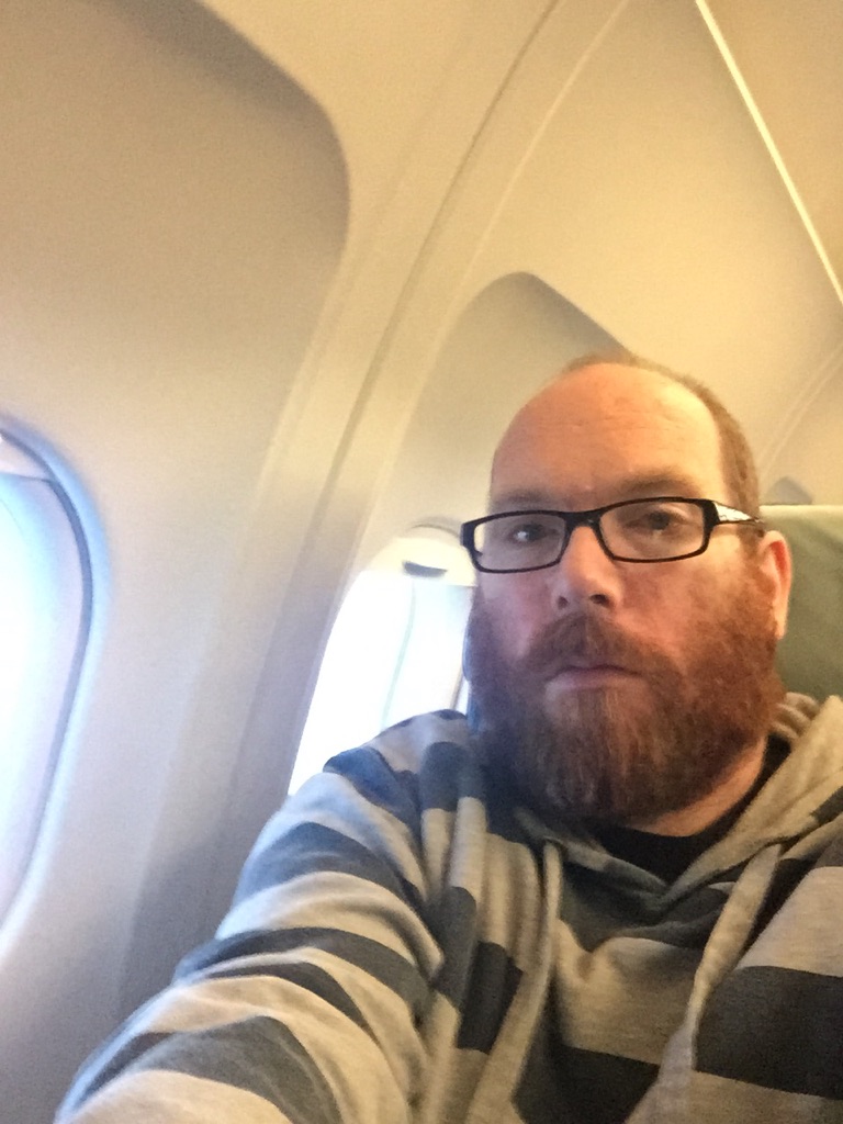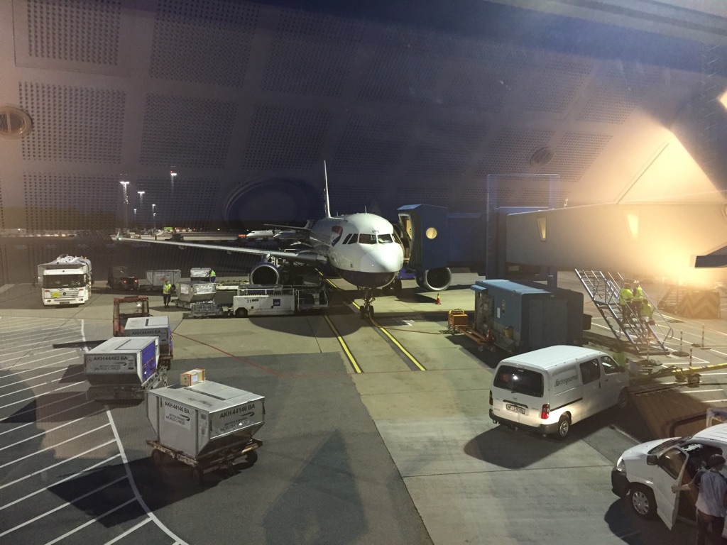 Since everything is a bit mad I buggered off as soon as it’s announced and the gate was heaving, boarding far from commencing. It was like the opposite of last Wednesday morning, this looked like a very full plane to me. When boarding eventually started at about 5pm there were no announcements, more just a general milling. I scooted through fast track and down the steps and into the plane. I’m in row 1 this time and get out of everyone’s way; boarding continued until 5.15pm and the flight was announced as full, except no-one comes to occupy 1D next to me. Score.