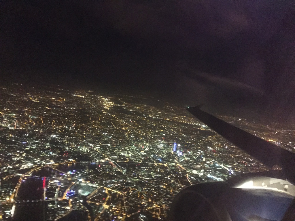 Ooh, look, there’s Essex or Kent. If the cabin lights were dimmed there’d be no reflection and I might have been able to get a picture. Of, like, Southend or something. The first officer says we’re 20 minutes from landing and therefore only 10 minutes late. Good work, BA.