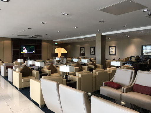 I had two choices of lounge: the British Airways lounge, or the Emirates lounge. Normally they would suggest the latter, but “due to the situation today” we were likely to depart from gate 42, not gates 1-7, and thus the BA lounge is much nearer and the one they are recommending.