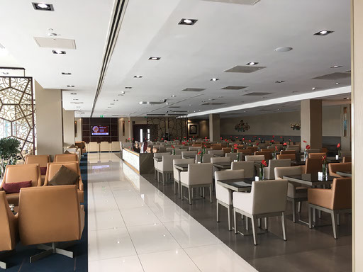 The Emirates lounge was empty. Literally, 100% empty. I was the only passenger in the whole place. There were about 8 members of staff and tons of empty chairs. I guess everyone else was heeding the advice. This meant I could take a whole bunch of photos without being remotely self-conscious, as most of the time even the staff were absent from view - they were all crowded around the cold food, hence no pics of that.