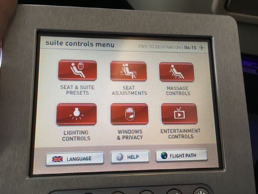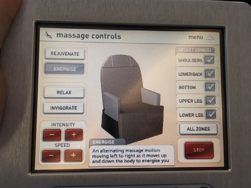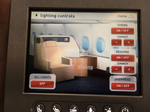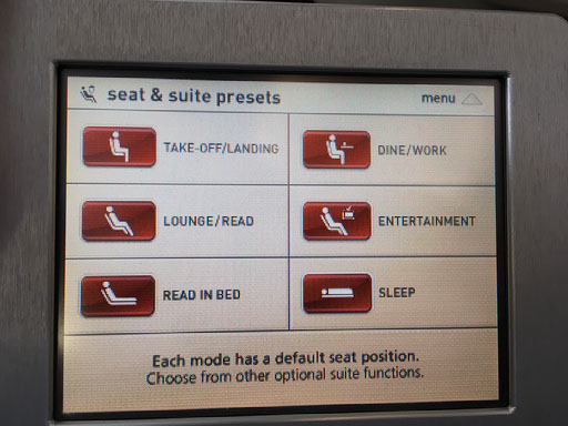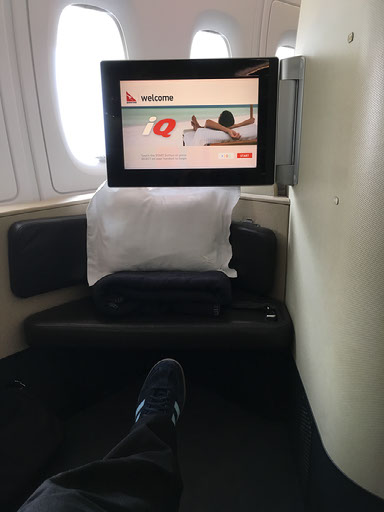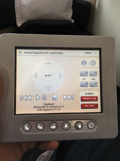 Right, the seat. It’s the same as last time, in case any readers can recall my debut Qantas first class trip back in March 2014. There’s masses of room and an incredibly detailed - not to mention heavy - handheld controller for the entertainment, window blinds, lighting, and seat/suite. I love this shit.
