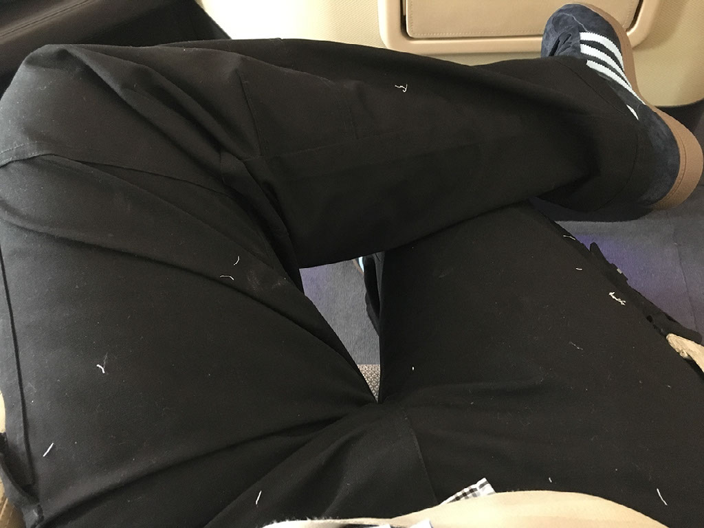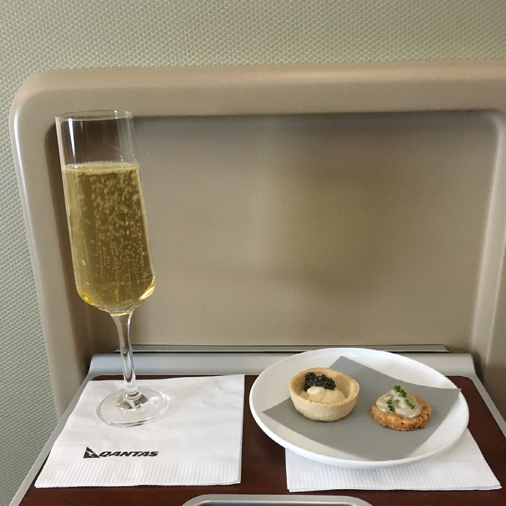 I’m asked what drink I’d like once we’re airborne, to which I respond: might as well stick to the champagne. Oh, and can I have an amenity kit?