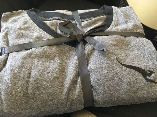 Robin’s face drops. He’s fucking mortified, like, seriously distressed that he hasn’t delivered one to me yet. He disappears off, and returns with a forlorn look on his face. There’s an amenity kit, which is fine, but two pairs of pyjamas. He’s afraid they’ve only loaded L/XL. I’m like, hello, fat bloke here, surely that’s fine - but he goes to pains to tell me I probably need a medium, because these are made for 7ft giants and they’ll hang off me.