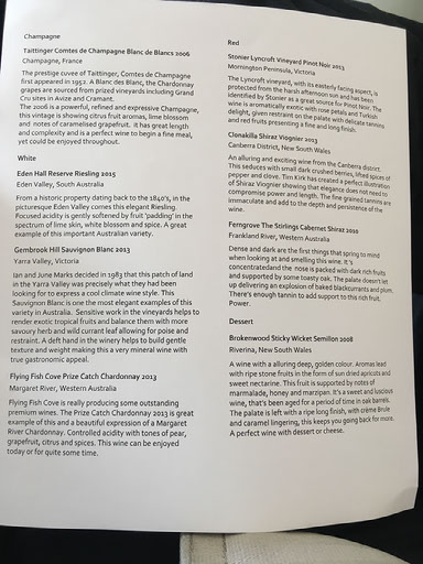 Ooh, more bubbly. And the meal, chosen from this menu.