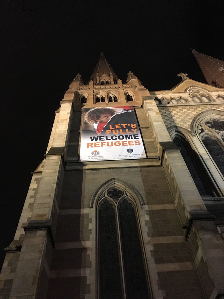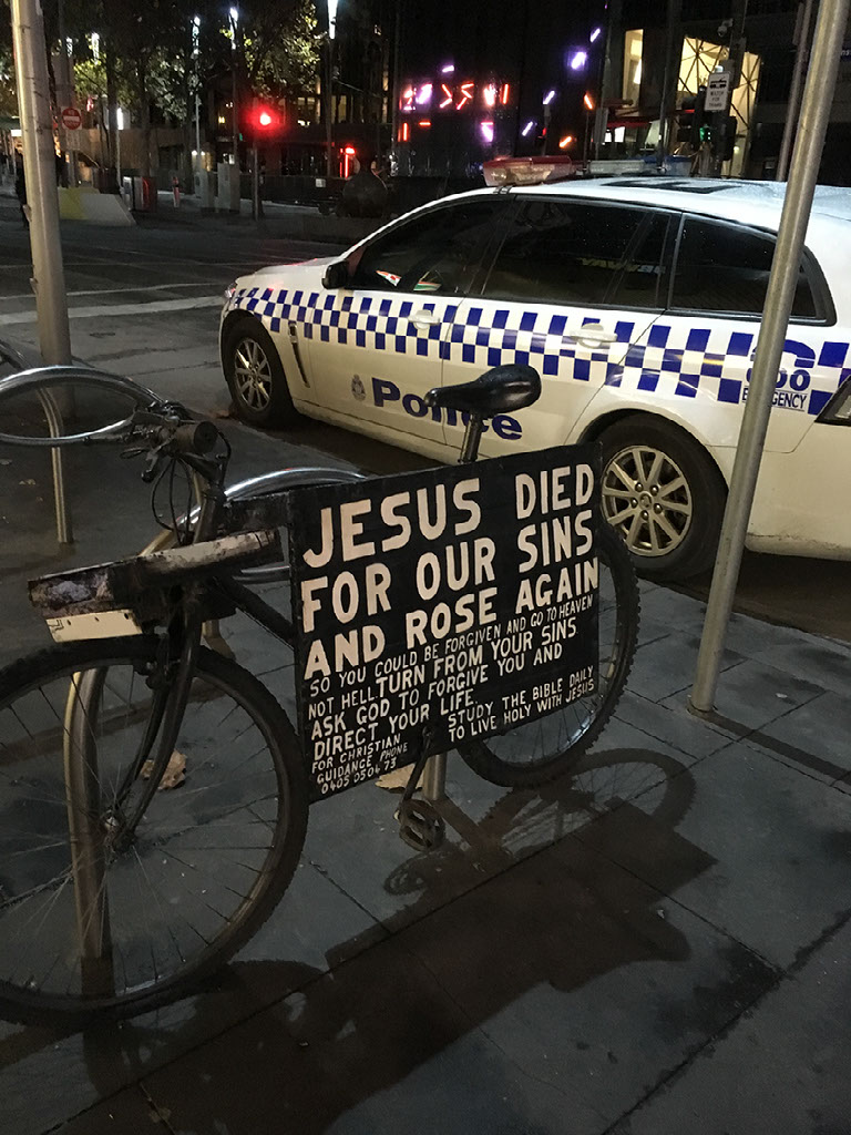 I step outside the hotel, not sure which way Southern Cross station is nor whether that’s somewhere useful to be, but Google Maps shows me that Uber is available. Oh, there’s Uber in Melbourne? Yes, there’s Uber in Melbourne! The driver is 3 minutes away, which becomes 6, and is eventually 10. Another 10 minutes later and I’m on Flinders Street, opposite a spectacular station and outside a heartwarming sign - considering everything that’s been going on back home recently.