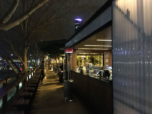 Next, a bar called Transport Public (or Public Transport?) round the corner, and a White Rabbit Dark Ale. They call last orders literally seconds after we order our drinks. Oh, OK then. We move on again, crossing the river and walking for a bit only to cross back over and drink at the Arbory, an outdoor bar between a train station platform and the riverfront. Mountain Goat steam ale, and they call last orders literally seconds after we order our drinks.