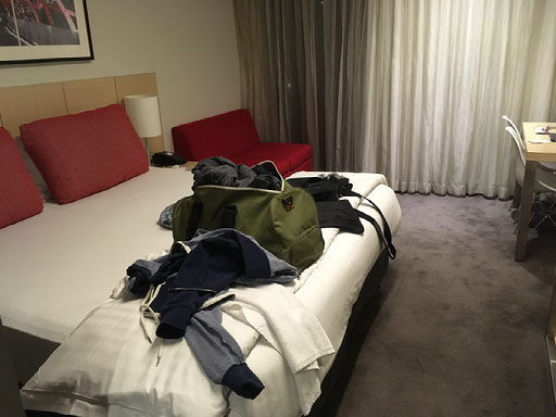In the hotel I check in and they’re, like, “oh like George Foreman?”. Not heard that one before. Credit card and ID taken, I’m given room 621. It’s about 9.30pm and I’m pretty tired. It’s been a hell of a journey. I buy some wifi, post my blog, read the sign about there being no hot water from midnight to 6am, then I have a shower, get changed, and go to the pub.