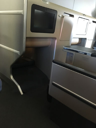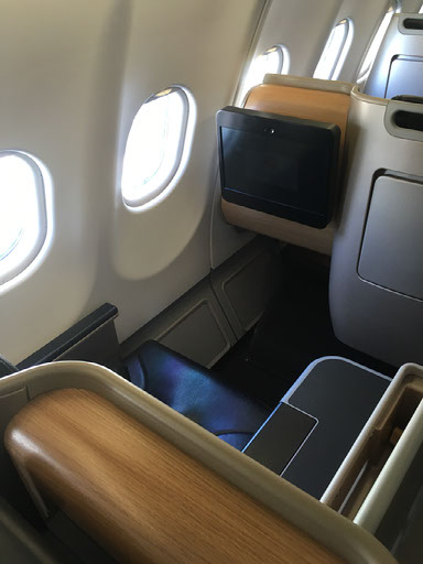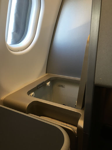 There’s no disintegrating hot towel, but there is some guava juice. My seat is in a kind of mini-cabin, with only one window seat on each side and two rows in the middle - everything is in a staggered layout - ahead of us being the loos and first 6 rows of business class. Privacy is decent but not spectacular because my seat is next to the aisle, storage etc on the left by the window. Every other row has this in reverse. This also makes it quite annoyingly fiddly to lean over and take pics out of the window, but I clumsily do so numerous times anyway.