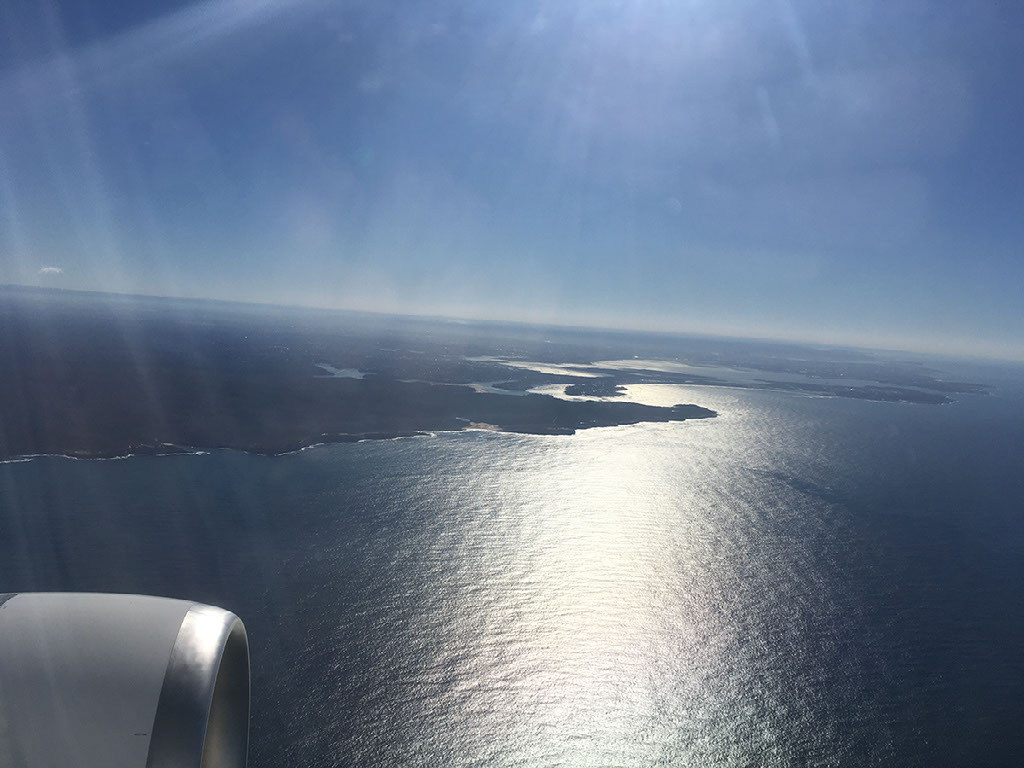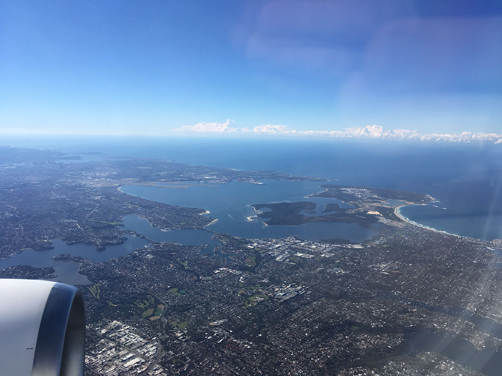 My beer, and some people’s food, doesn’t arrive until we’ve already started our descent, but no-one is hurried to finish. Sydney is 15Âșc and sunny and we’re at the gate by 1210, almost 40 minutes late. Announcements have already been made that those customers connecting on to LA or San Francisco will be OK, but only if they get a shift on. I have slight pangs of jealousy I’m not joining them.