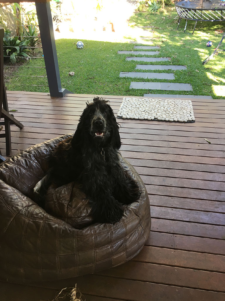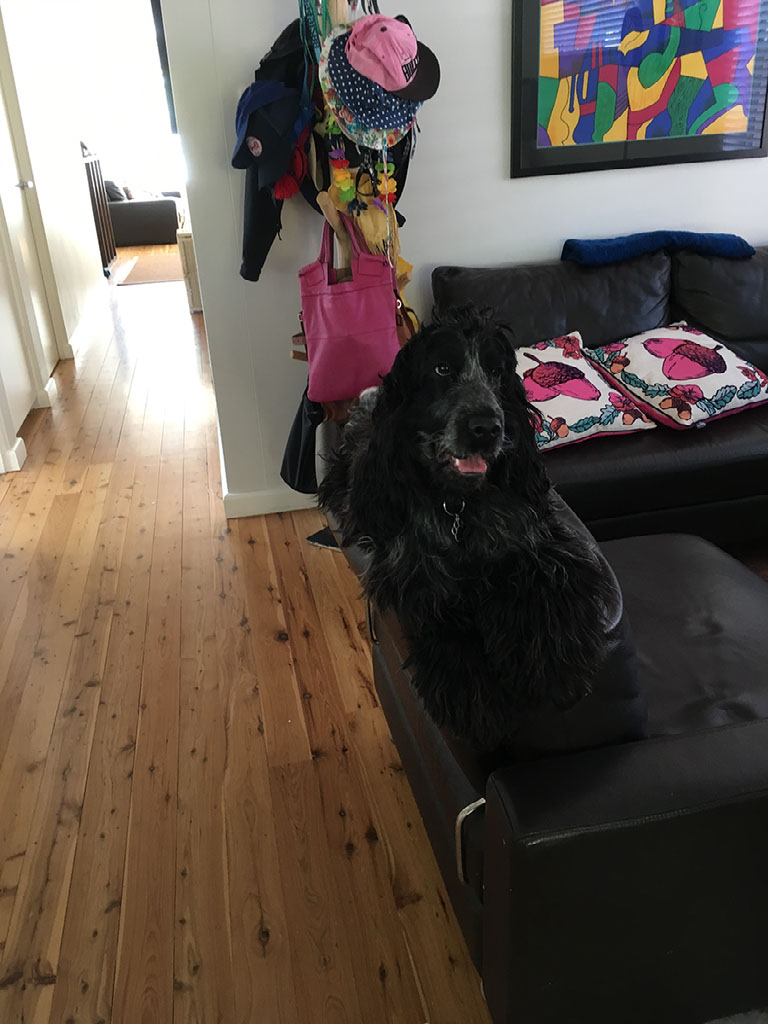 But, eventually, I’m at my brother’s house. There’s a dog’s nose pointing out under the gate, until I lean over, at which point there’s a very very jumpy friendly jumpy licky jumpy jumpy dog. My welcoming committee: hello, Pepper!
