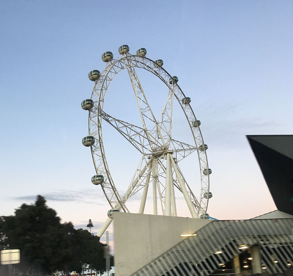 Ian says paying to get home is pointless, because central Melbourne has trams which are free. All I need to do is walk a block away from the river, get a tram a few stops to Southern Cross station and then walk a block to my hotel. And so it proves, though I’m drunk and tired and feeling a bit lost so it’s not the fastest journey.