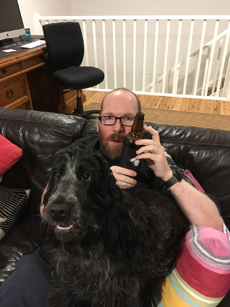 The dog continues to be friendly, unfortunately too much so when she licks my stout can top and I spill it on the floor trying to stop this. Doh.