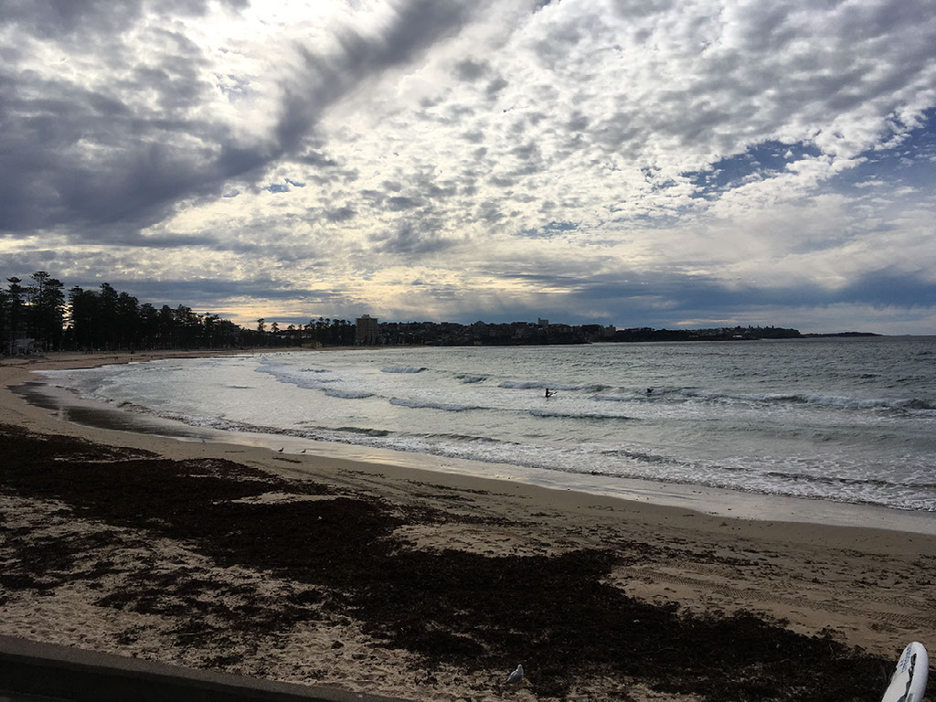 That’s kinda it. My first full day in Sydney is, if anything, even less blogworthy. Stayed in bed until 11am, Kevin got back half hour later and we went for breakfast in Manly. It’s cloudy and storm battered.