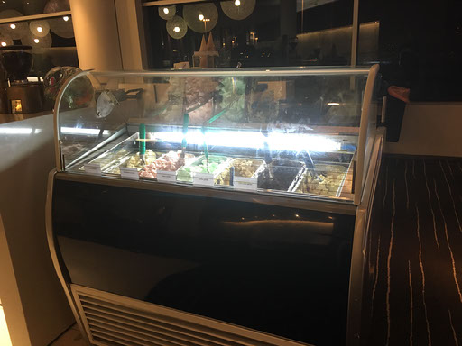 Also some proper gelato thing and, um, seemingly no champagne. Damn it! Oh, wait, there’s a thing which says “mimosa cocktail” underneath some orange coloured drink in a drum with a tap. Pre-mix mimosa? I pour one, it’s not fizzy, it’s not alcoholic, it’s just orange juice. Oh. But the wine next to it is wine, not champagne. How is this mimosa?