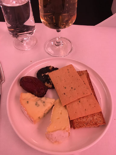 When I ask for champagne, he asks how much: “normal, or a nice big one?”. I like this guy. The cabin lights go down very quickly and in fact service is lightning fast in general; I don’t even finish my last oatcake before the plate is whisked away and dessert wine comes after the cheese is finished. Also, it’s nasty and nothing like port. Boo.