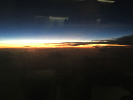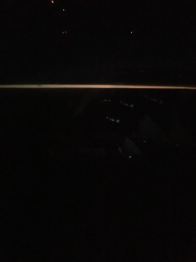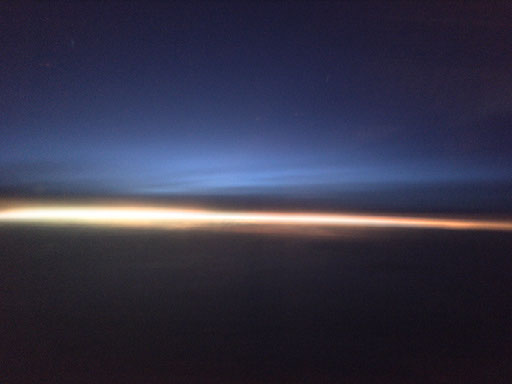 Lights come up. The cabin stirs. I get changed back into civvies and take dreadful time-lapse photos out of the window which is more than an arm’s length away from my seat. The captain says Mount Fuji is visible from the left hand side, and this makes me sad. I had a chance to pick a left hand side seat but after checking whether Fuji would be visible on the flight, and finding the answer is no, I didn’t bother moving. Wish I had now!