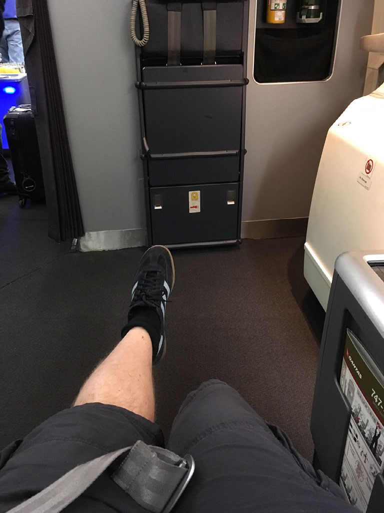 Then, we board. Hurrah! I wander down the airbridge and through gate B, welcomed with a big smile and I can already see my seat from the door. Exit row 5J, renowned as the best seat on the plane for the solo traveller. Hello, legroom!