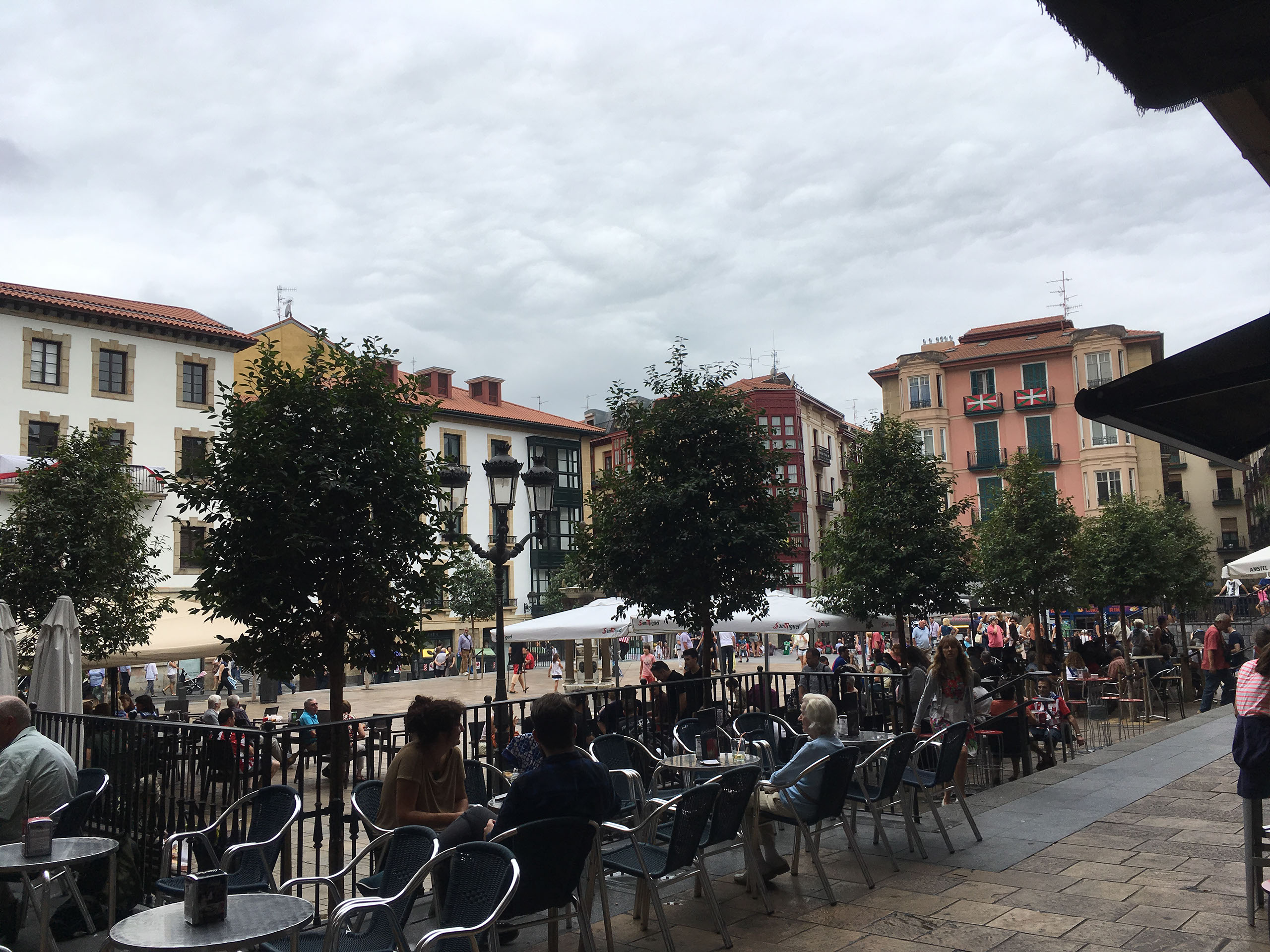 By the time we leave, this square will be heaving. A good 30% of folk will be wearing Atheltic Bilbao colours; turns out they’re playing Barcelona at home tonight, and people like to start their drinking 8 hours before kickoff.