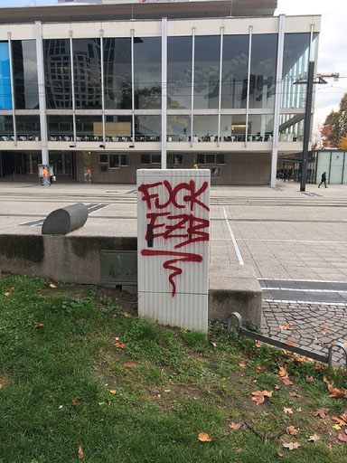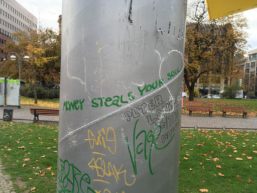Turns out I’m at the European central bank. Who knew that was in central Frankfurt? Probably an awful lot of people, to be honest. Certainly the authors of the anti-ECB/money graffiti around the place.