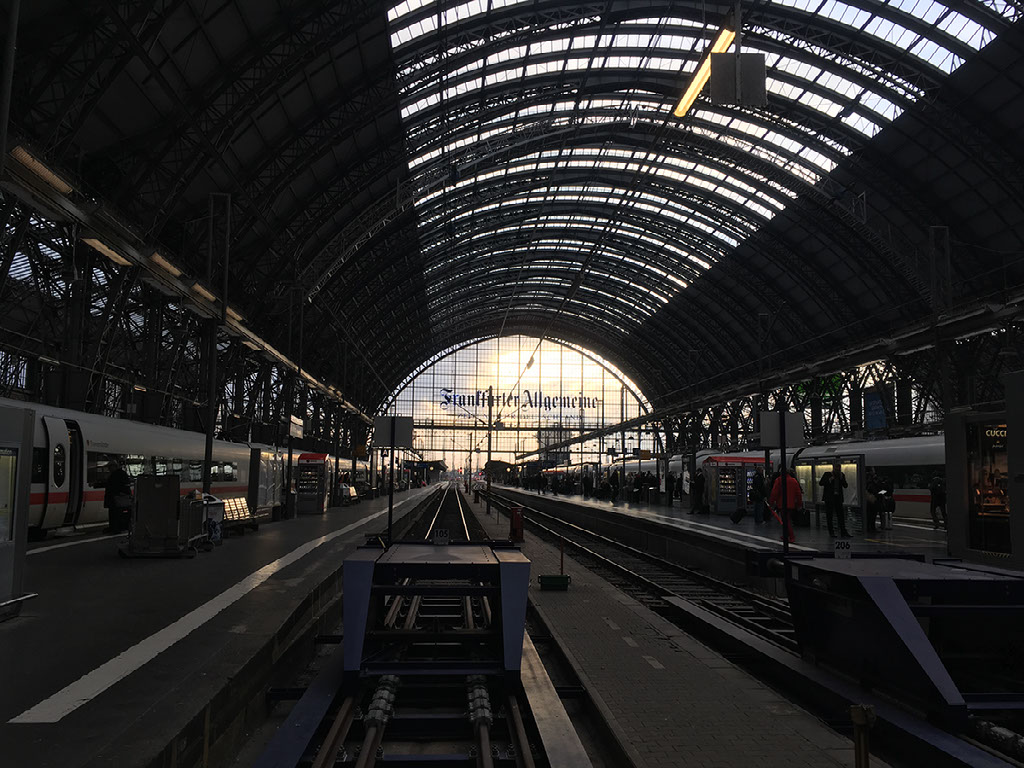 The barman tells me worst case scenario from the pub to the airport is around 35 minutes. Did I not mention yet that I was heading to the airport? Yes, I’d checked out of my hotel this morning because I have somewhere else to be this evening. So, I leave, walk to the Hbf, get a ticket and board an S-Bahn to FRA. It’s nothing like as traumatic as the previous night. Germany does train stations well, mostly.