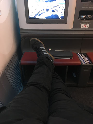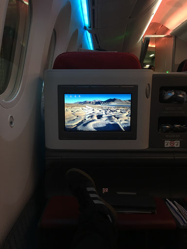 After eating, and during a second episode of Sons of Anarchy, I write the first half of this blog post. But then we’re about to start our descent and all electronics have to disappear. Fair enough. It’s not a long enough flight or my liking, but I’m impressed and would love to do it again, all the way to Chile. There’s no privacy at all, mind, but I assume Helen wouldn’t mind coming with me, especially since if we started in Frankfurt she could happily smoke right up until departure.