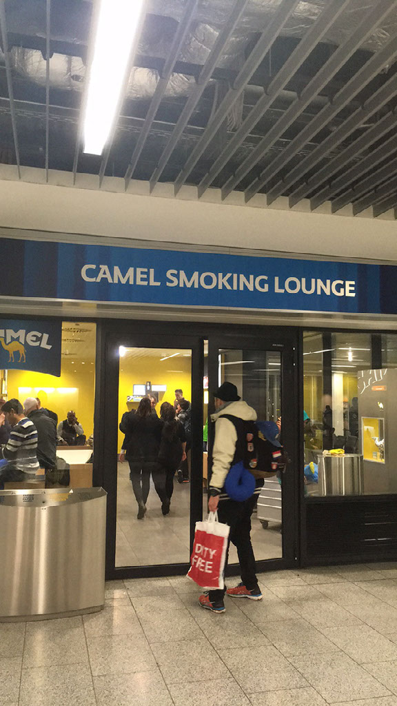 I start following them but turn back pretty quickly; a check on the internet says I should actually be going to the B gates, and that’s behind me. It’s a long way behind me. The corridor goes on and on and on and at the end of it is, um, some security gates. Apparently I’m in some kind of airside connections area, and now have to get X-rayed and stuff. Weird. The queue I’m in is gestured to that we split in half, so I head to another machine which is manned by 9 people who are all sharing some in-joke none of us passengers get. My coat is singled out for extra attention because oh god damn it I’ve left my spring-loaded selfie-holster hidden from view again. When will I learn?