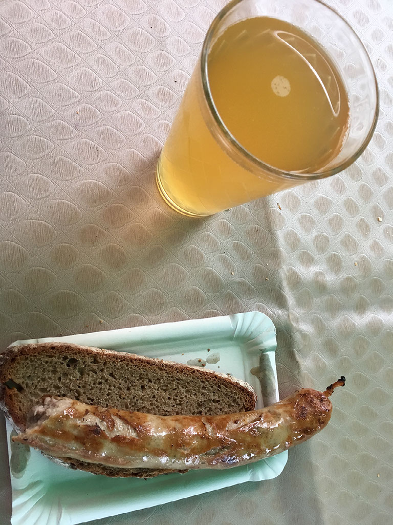 I can’t pick a stall until I do, ordering a bratwurst mit bro and some apfelwein. There are 3 Frankfurt-y culinary experiences I had on my mind (not including a Frankfurter): handkåse mit musik, grune soße, and apfelwein/ebbelwoi. Handkåse mit musik means “hand cheese with music”: it’s cheese rolled by hand until it’s translucent, and “the music comes later” - a reference to the fact it’ll make you fart aterwards. I had been massively looking forward to trying this, but sadly did not do so.