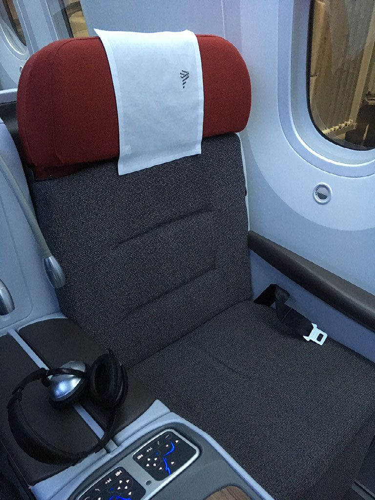 The seat is great. I’ve only been on a 787 before with Qatar Airways, whose business class cabin is 4 abreast - 1-2-1 - whereas this is 6 abreast, 2-2-2. If there was someone sat in 3C I would have had to clamber over them, but no-one ever did. The seats are still very roomy and comfortable and there’s a nice big TV screen, with very responsive touchscreen controls which is handy because my remote is almost entirely broken but for the volume control.