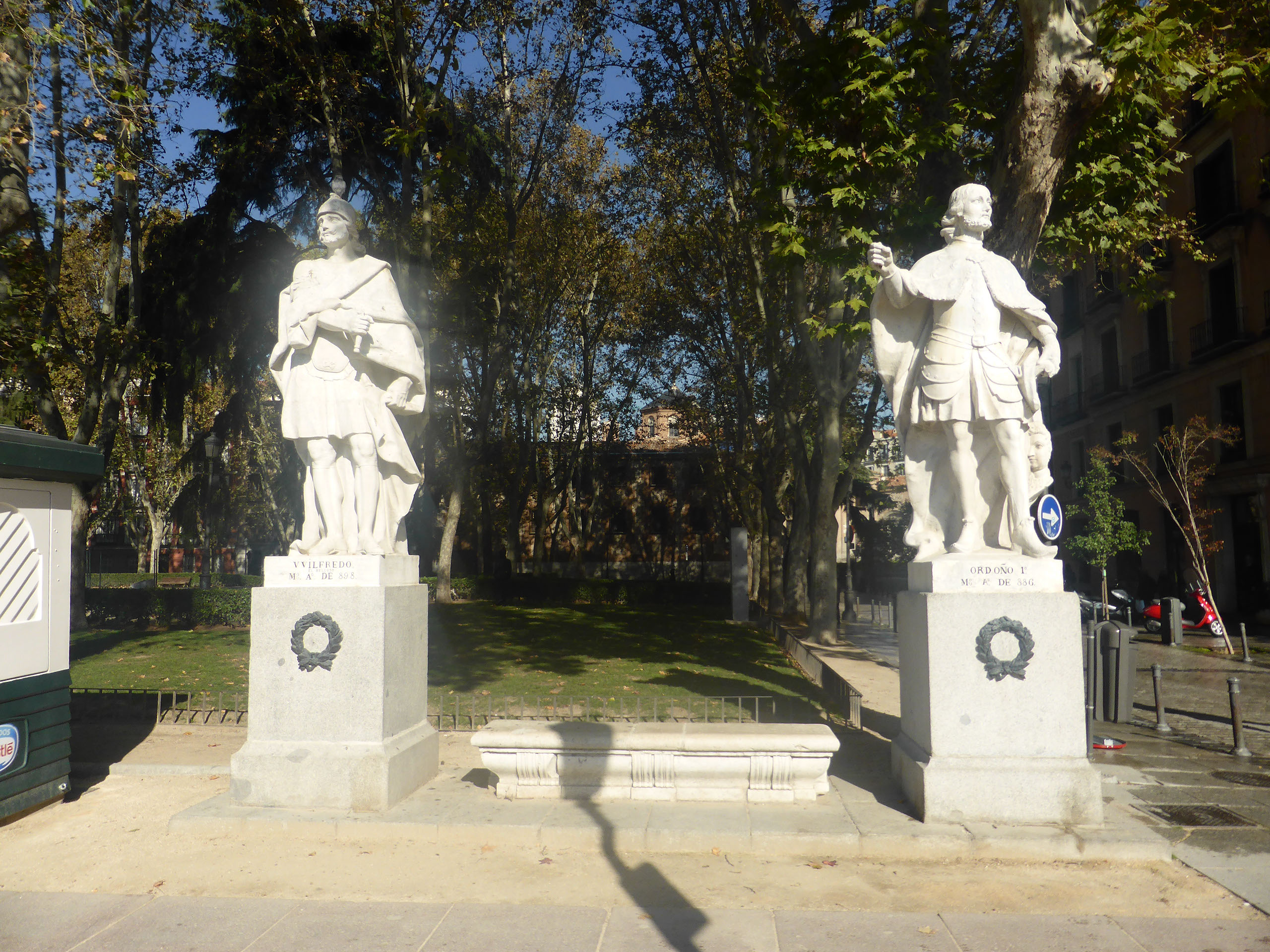 Here I go off piste, because the guide says to go back up to the road but I go through the arch, emerging into a deeply unimpressive area with a bike rack and nothing else. Perhaps Nat Geo know their stuff after all. Back on the street and past some decent pastry shop, then a memorial to some attempt on someone’s life - the king? - over 100 years ago.