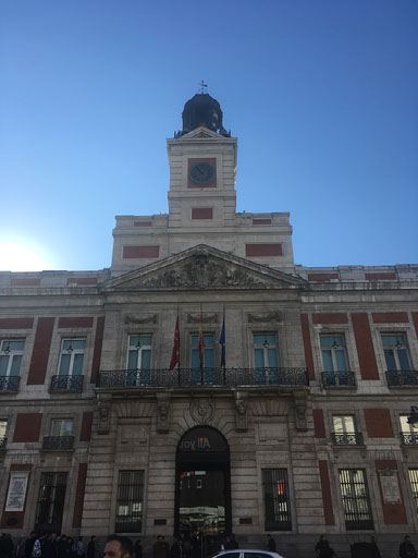 Within moments I’m in a little corner store buying diet coke and a pre-packaged sandwich. This is not part of the tour. Seconds later, however, I’m at Puerta del Sol., the centre of Madrid. Literally. In this square is a statue of a horse, roughly a million tourists and a hundred thousand people offering “free” walking tours, a whole bunch of people dressed as statues or Mario or chickens or dinosaurs or soldiers, but most importantly there is kilometre zero: the point to/from which all distances to Madrid are measured. Like the bit in front of Charing Cross station in London. I try and find the actual zero point but fail, and hanging around with so many people vying for my custom and attention is already wearing me down. Best get on with the walk.
