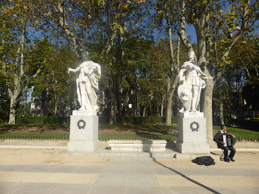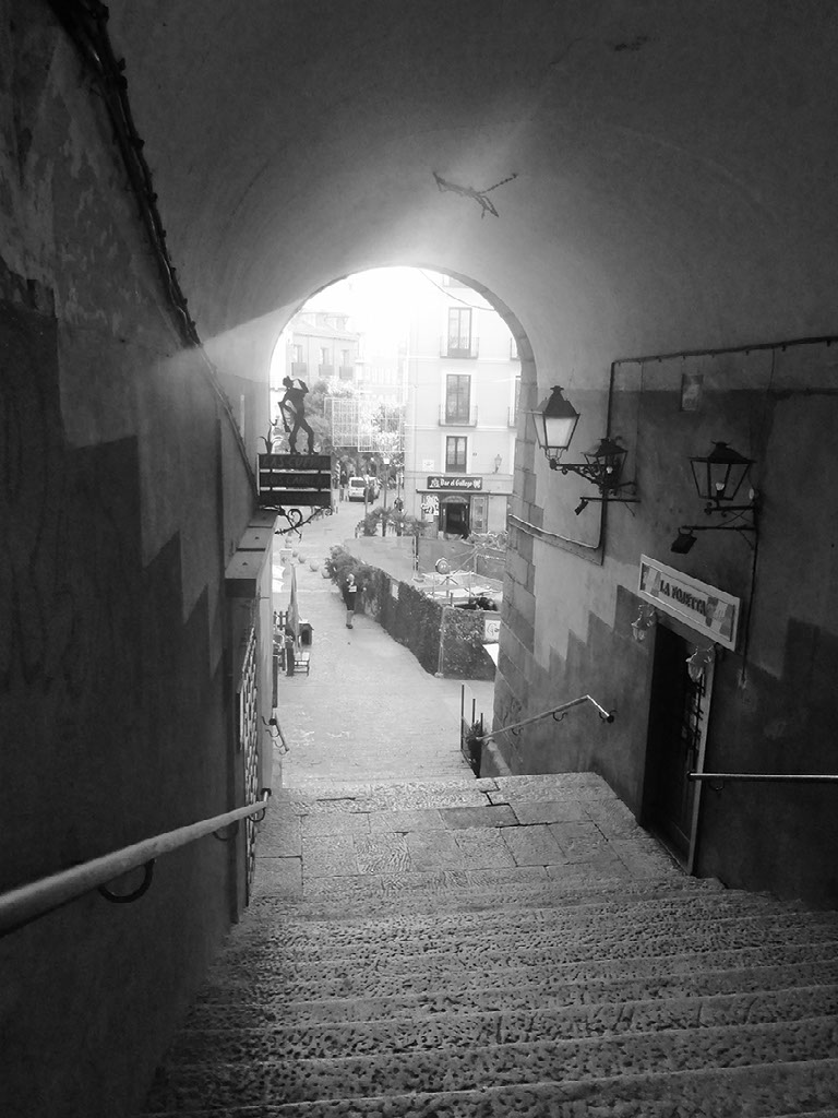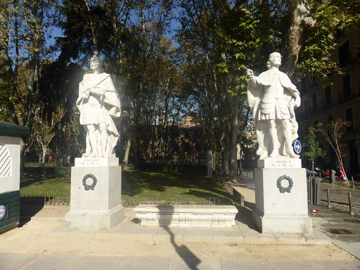 Further down and more statues, then right and right again into another square. So far I am very much enjoying Madrid: lots of twisty turns, narrow streets and wide plazas, really pretty architecture and an insanely high number of places to eat and drink. The weather is great, which helps. Wish I had some headphones though.
