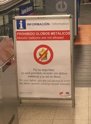 At the platform for the train to the airport I peer into the sidings, and am bemused by a ban on metallic balloons.
