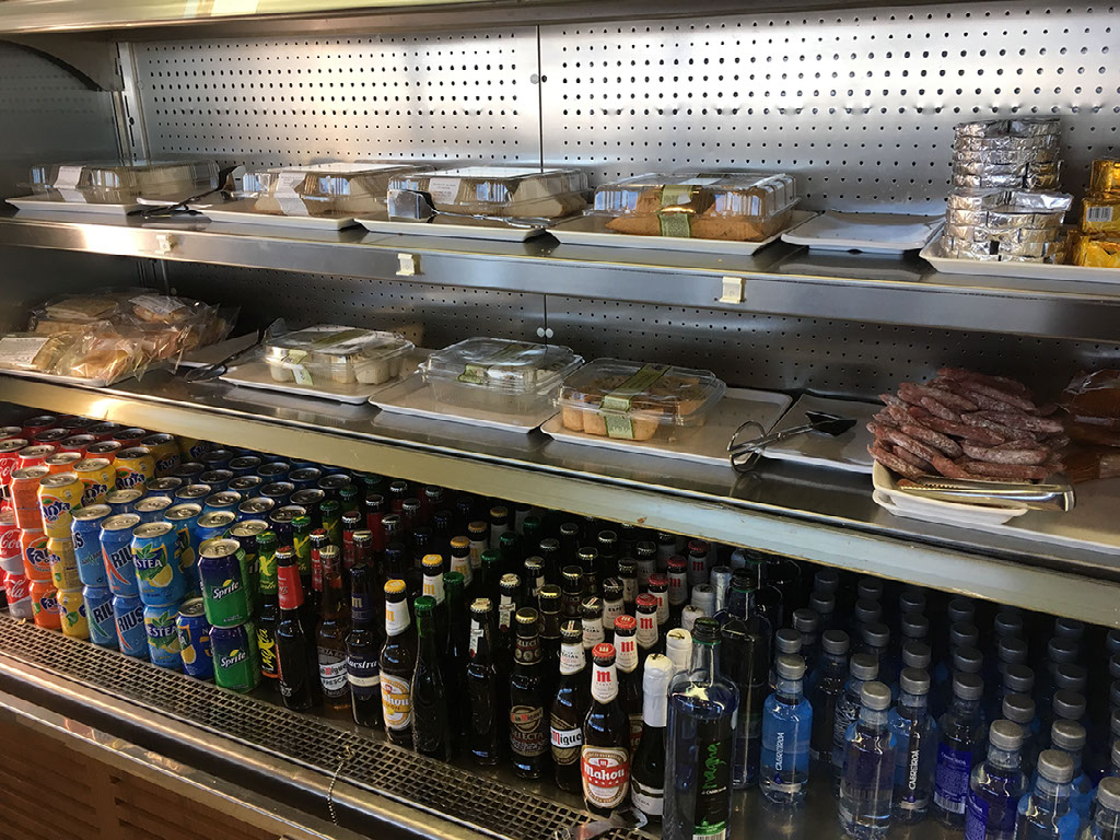 It helps that it’s mostly empty. I get a seat next to the window and by the “bar”, where all the spirits and water and other drinks I don’t recognise are. But first, food. There’s a wide range of cold stuff in fridges, cold stuff on plates, and hot stuff on plates. I get loads of meat and cheese and olives and more cheese, and a bottle of San Miguel “selecta”.