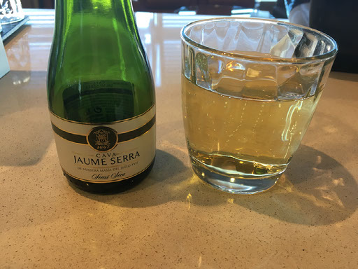 Service starts. It’s not hugely salubrious - do I want pasta or chicken? I opt for chicken, and get a tray with everything except the main still wrapped in cling film. And a sparkling wine please, thank you.