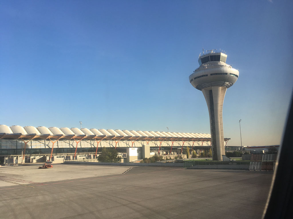 The tube ride is nondescript. At T4 I get through security quickly enough, this time actually leaving my selfie holster out so as not to alarm anyone. The gate for my flight is not yet known, but the monitors do say I will be departing from the R/S/U area in the satellite terminal. I’ve got plenty of time though, so I follow signs to the lounge. Downstairs, past some shops and bars, suddenly there are two signs to lounges and I realise I’ve been following those to one I can’t get into. So I follow the Iberia lounge signs and end up directly back where I had emerged from security. DAMN IT.